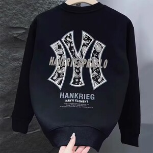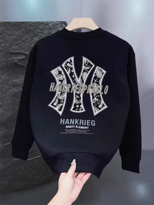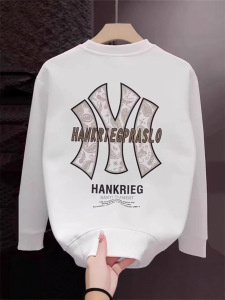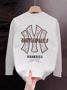 秋冬新款潮牌印花圆领纯棉卫衣男士潮流修身百搭休闲加绒长袖上衣