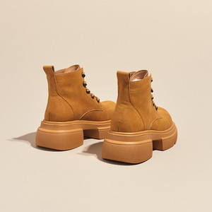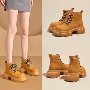 厚底内增高马丁靴女秋季新款英伦风单靴复古真皮休闲大黄靴女