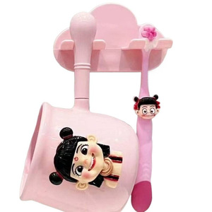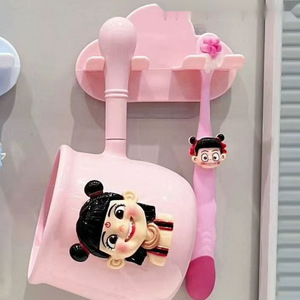 哪吒敖丙漱口杯刷牙漱口洗漱墙式儿童牙杯电动牙刷置物架套装收纳