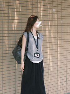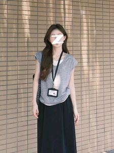 假两件灰色小飞袖正肩短袖t恤女夏季设计感小个子宽松显瘦上衣薄