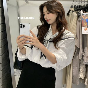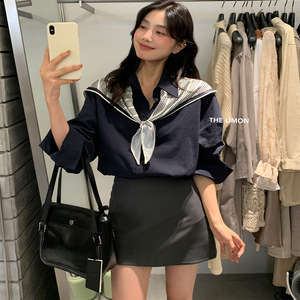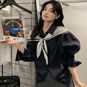 THE LIMON柠檬绿茶2025秋季韩系亚麻衬衫时尚洋气百搭上衣配丝巾