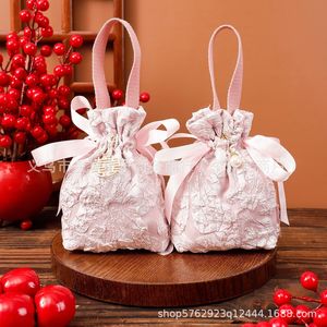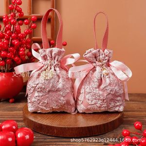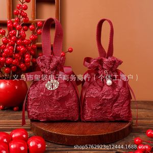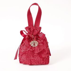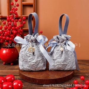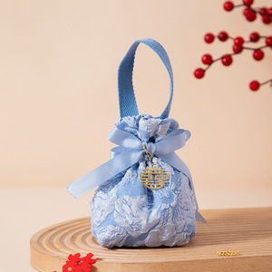 婚庆纹理手提束口喜糖盒礼物袋子结婚喜糖袋子婚礼伴手礼免折叠