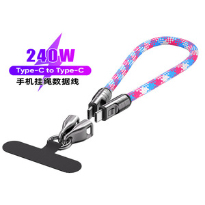 跨境爆款240W快充数据线双type-c挂绳便携数据线充电宝专用短线