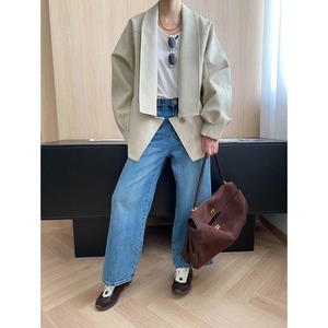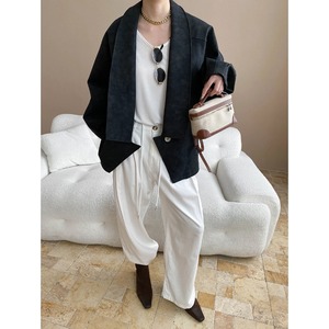 司南 早秋新款 小众解构设计感宽门襟一粒扣廓形皮衣外套 SN7808