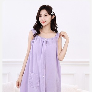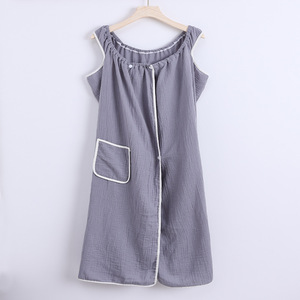 25年夏季7A抗菌纯棉皱布泡泡纱布女浴袍浴巾速干浴裙跨境热销款