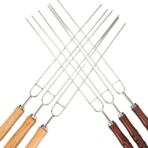 烧烤签子不锈钢U型烤肉鸡翅叉加厚加粗木柄家用商用鸡翅叉烧烤签