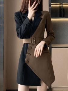 2025春秋新款女装桔梗法式气质高级感不规则连衣裙设计小众西装裙