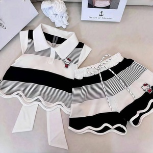 女童套装夏季新款2025条纹翻领背心上衣短裤儿童休闲两件套跨境