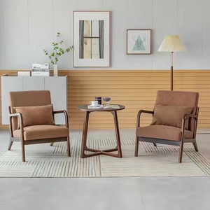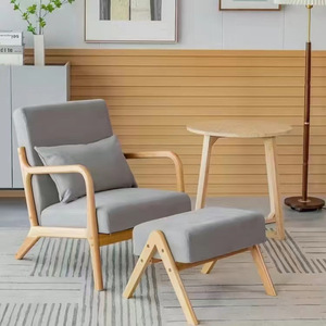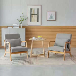 现代简约北欧布艺休闲可拆洗单人沙发小户型客厅阳台实木桌椅组合