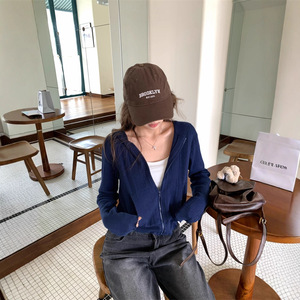 实拍 2025初秋韩版减龄显瘦连帽拉链薄款显瘦针织开衫卫衣外套女