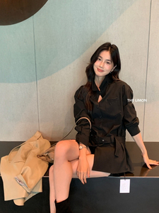 THE LIMON柠檬绿茶秋季高级感单排扣收腰翻领长袖衬衫女(配腰带)