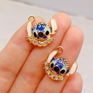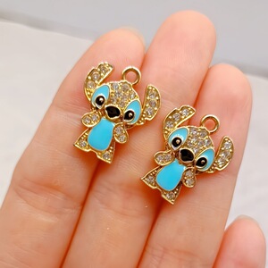 金色史迪仔挂件配饰俏皮大耳朵吊坠卡通水晶合金配件DIY手链服饰