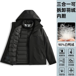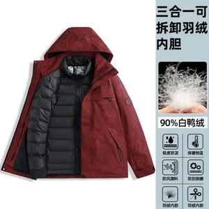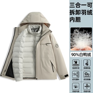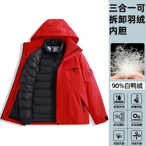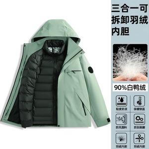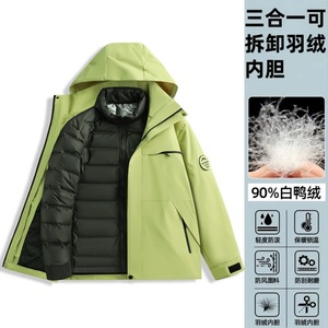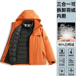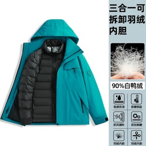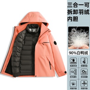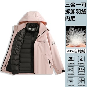 骆陀同款羽绒冲锋衣女户外三合一防风防水保暖两件套男小个子外套