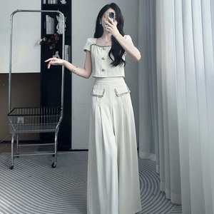 高端品质法式套装2025夏季流行气质设计感显瘦小香风上衣阔腿裤子