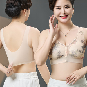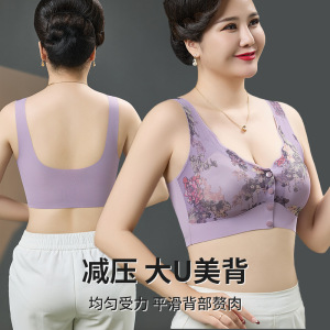 妈妈内衣女中老年前扣无钢圈聚拢提拉固定收副乳超薄冰丝背心文胸