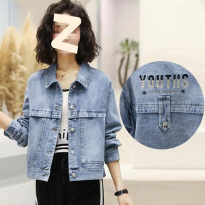 宽松时尚字母刺绣上衣潮春秋新款韩版洋气牛仔外套女短款简约
