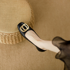 牛皮版~真皮奶奶鞋女2025年新款法式百搭浅口方头软皮平底单鞋女.
