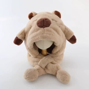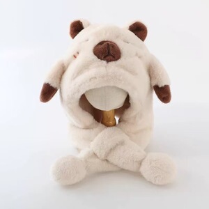 网红会动耳朵帽子围巾手套毛绒帽子冬季骑行保暖围巾一体可爱