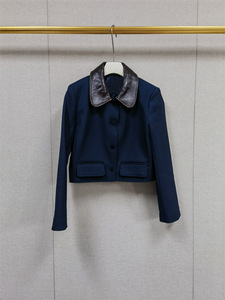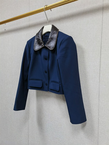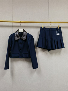 法式小众2025秋冬时尚拼皮翻领单排扣外套百褶高腰裙裤英伦风套装