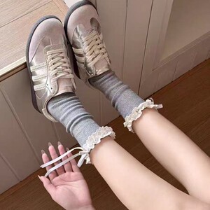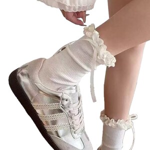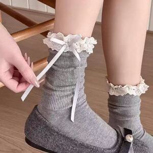 亚马逊设计师款新品朵朵花边蝴蝶结丝批发无骨堆堆袜中筒堆堆袜