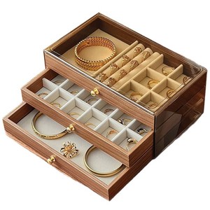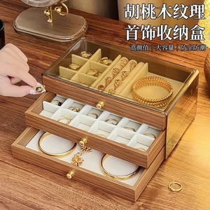 首饰品收纳木质大容量轻奢高级感高档珠宝饰品收纳盒多层绒布托盘