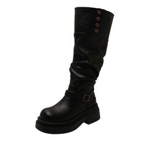 美拉德粗跟厚底长筒靴女2025新款秋冬显瘦长靴不过膝高筒骑士靴子