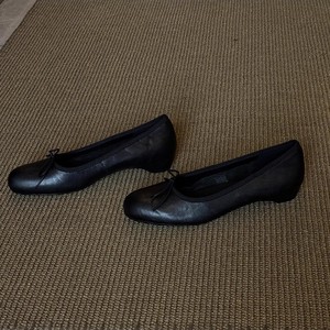 羊皮版~复古一脚蹬蝴蝶结浅口单鞋女内增高真皮通勤圆头工作鞋子