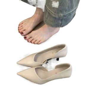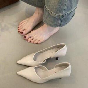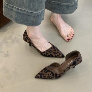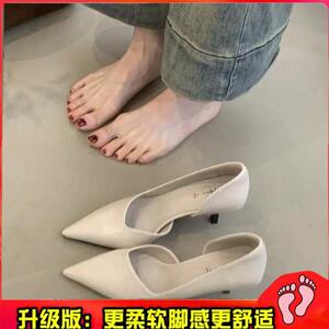 法式尖头高跟鞋女细跟侧空气质通勤职业复古一脚蹬单鞋春季