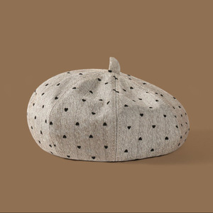 帽子秋冬爱心条纹南瓜帽女百搭学生情侣文艺画家帽显脸小贝雷帽男