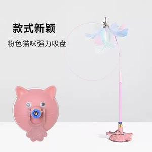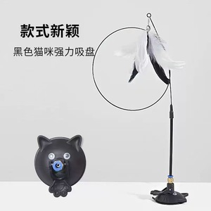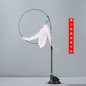猫脸强力吸盘逗猫棒多彩羽毛替换头彩色钢丝逗猫玩具现货厂家直销