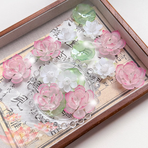 夏日荷花古风新中式莲花荷叶仿真水滴立体热缩片diy手工挂件