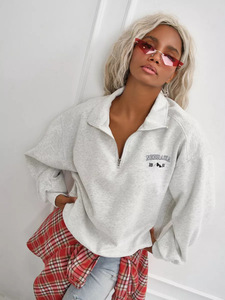 美式休闲洋气百搭潮流可爱风印花秋冬季加厚翻领半拉链卫衣上衣女