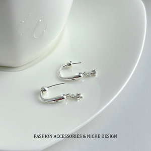 韩系ins冷淡风十字星星吊坠小耳环女高级感精致小众百搭气质耳钩