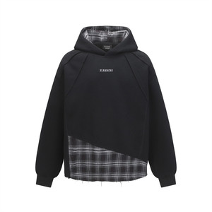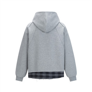 假两件连帽卫衣男士拼接格子不规则设计感解构小众宽松运动衫潮牌
