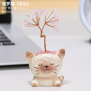 水晶树摆件萌宠桌面装饰新款办公室礼物紫黄发财树教师节礼物新款