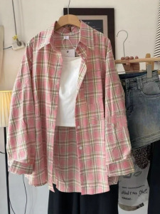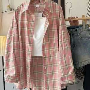 格子长袖衬衫女士夏季2025新中长薄款韩系宽松外套穿白搭开衫上衣