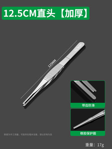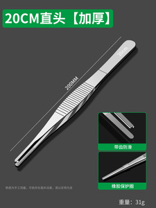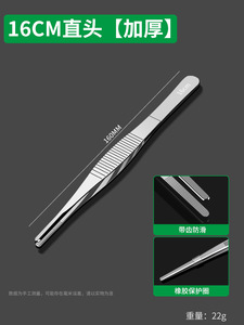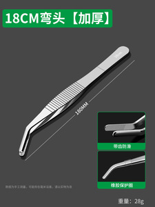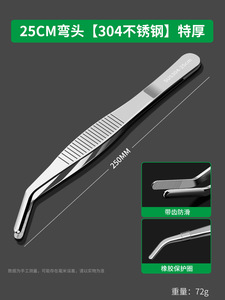 304不锈钢镊子弯圆头防碘伏加厚带齿防滑敷料镊水草多肉喂食夹子