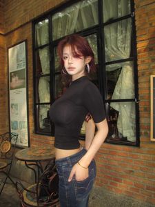 小野花菜SiuYeahRich{简单赢很大}半高领修身T恤显瘦显身材上衣