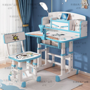小学生写字桌家用书桌书架组合小孩儿童学习桌椅套装可升降作业桌