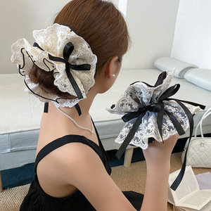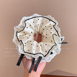 法式甜美复古波点蕾丝蝴蝶结大肠发圈2025新款温柔高级感头花发饰