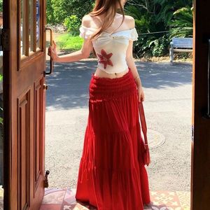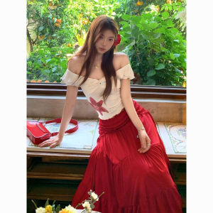 套装女2025夏季新款纯欲甜辣一字肩修身上衣+高腰显瘦长款半身裙