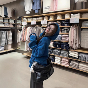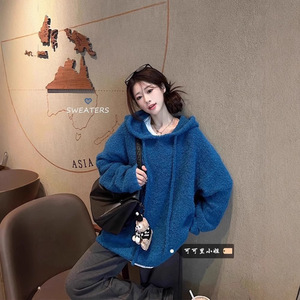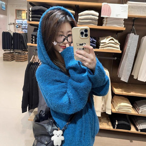 羊羔绒柔软长袖连帽优质毛衣女2025秋冬新款宽松时尚潮韩系针织衫