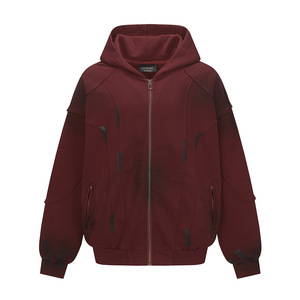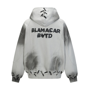废土风泼墨脏脏连帽卫衣男士解构设计感喷绘做旧拉链挖袋宽松外套