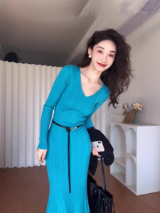 法式小香风针织连衣裙修身显瘦高级感御姐穿搭冷淡系独特别致裙子