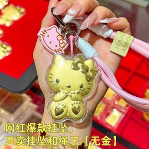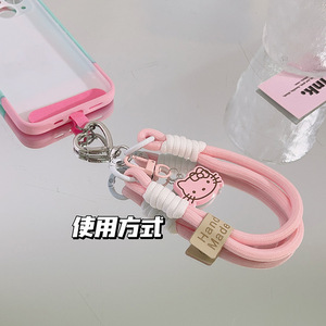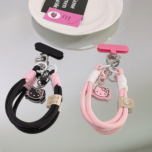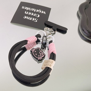 可旋转卡通立体黑色KT猫挂件手机壳挂绳纯色编织带手提腕带女通用