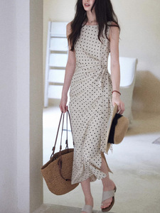 【松间月】高级感气质波点连衣裙女侧收腰亚麻棉法式长裙
