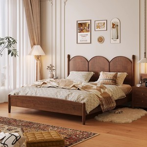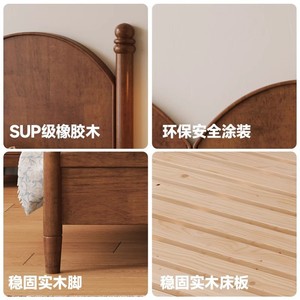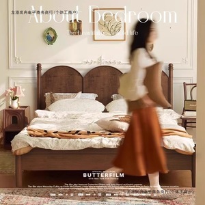 法式实木床现代简约1.5米1.8双人床中古风床美式复古小户型民宿床