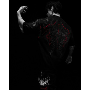 跨境Breathedivinity美式街头潮牌暗黑风格宽松大码男装短袖T恤