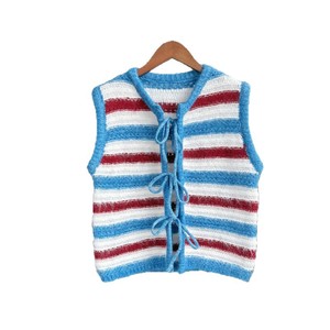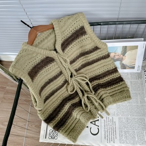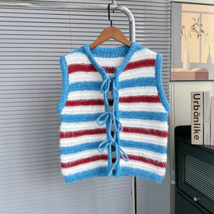 2025秋冬新款彩虹条纹撞色设计感毛衣马甲女休闲叠穿毛衣开衫上衣