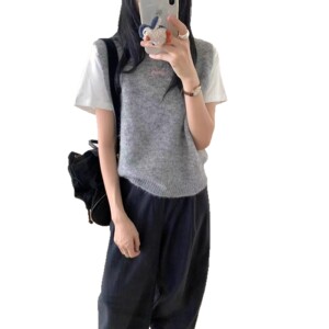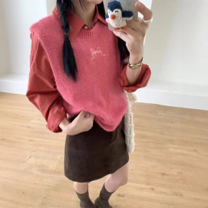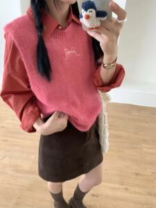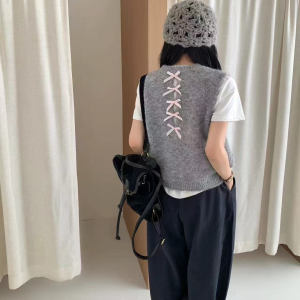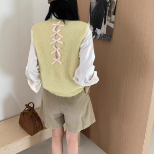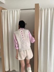 2025甜美糖果色后背镂空针织马甲软糯春秋学院风减龄无袖毛衣百搭